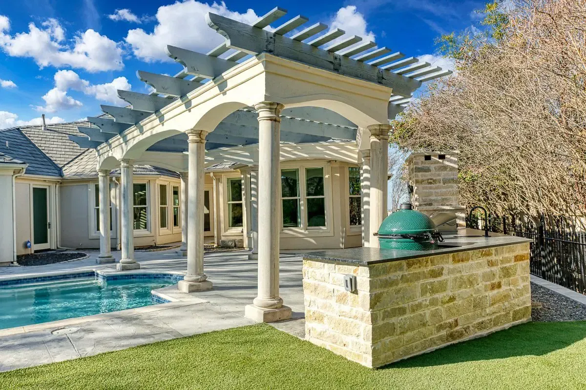 Integrated backyard structures built as part of one cohesive plan.